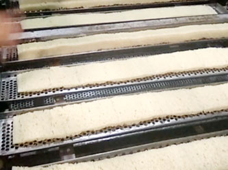 采用變頻器專(zhuān)用同步功能,編碼器測(cè)速,自動(dòng)裁切,保證米粉裁切長(zhǎng)度準(zhǔn)確,落盒精準(zhǔn),大大節(jié)省人工,從而大大提高生產(chǎn)效率。